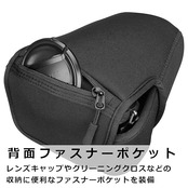 背面のポケットには外したレンズキャップやメモリーカードなどを収納可能。