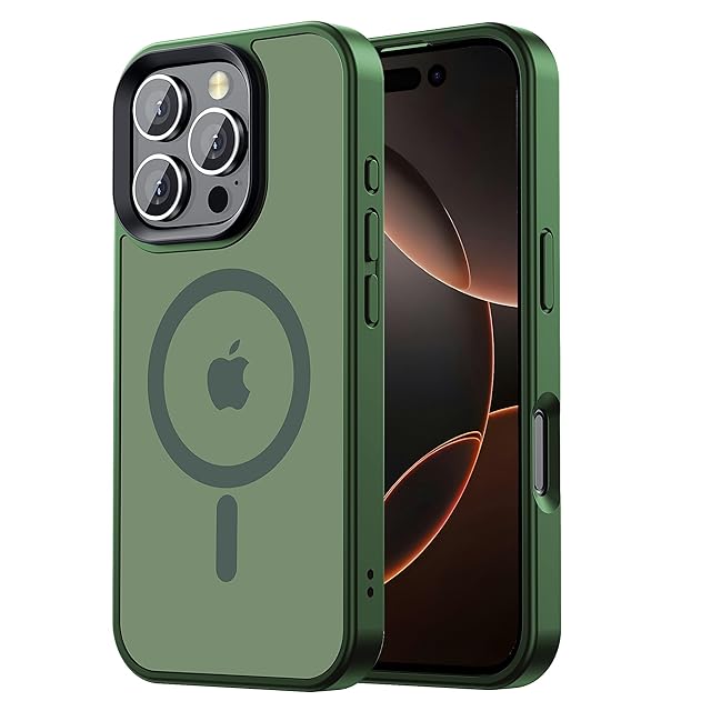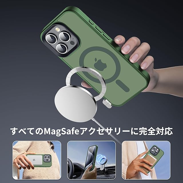 【米軍規格・MagSafe対応】Gtsoho iPhone 16 Pro Max ケース 用 ケース 透明 マグネット搭載 ワイヤレス充電 耐衝撃 耐久性 全面保護 黄ばみなし ストラップホール付き イフォン 16 Pro Max 用 カバー マグセーフ対応 グリーン | TREND DESIGN 家電専門店