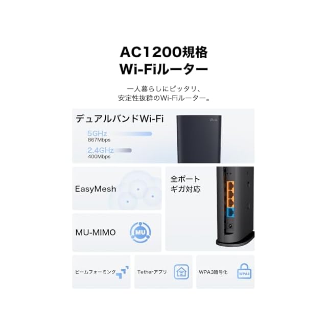 TP-Link WiFi ルーター 無線LAN AC1200規格 867+400Mbps EasyMesh ビームフォーミング WPA3 メーカー3年 Archer AC1200/A | TREND DESIGN 家電専門店