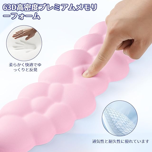 クラウドソフトコンフォート:プレミアム63D高密度メモリーフォームと新しいソフトで通気性のあるレザー生地を使用し、肌にフィットして非常に快適です。このかわいくてふわふわしたクラウド型キーボードパッドは、耐久性があり、あなたの手に完璧にフィットします。ゲームやオフィスでのデスクに最適な相棒です