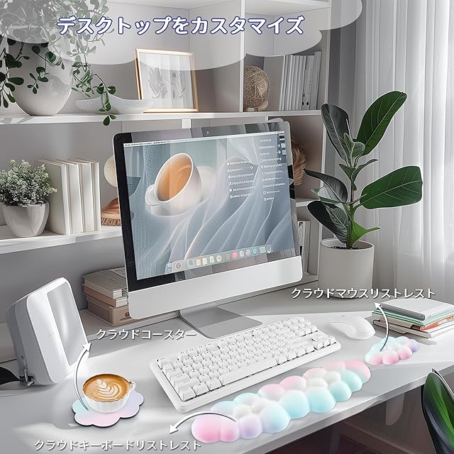 3-in-1 クラウドコンピュータアクセサリー:このスタイリッシュなギフトボックスには、キーボード用のクラウド型手首サポート、マウス用の手首サポート、そしてクラウド型コースターが含まれています。家族、友人、先生へのゲームデスクアクセサリーとして完璧なギフトです