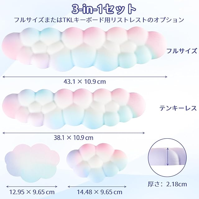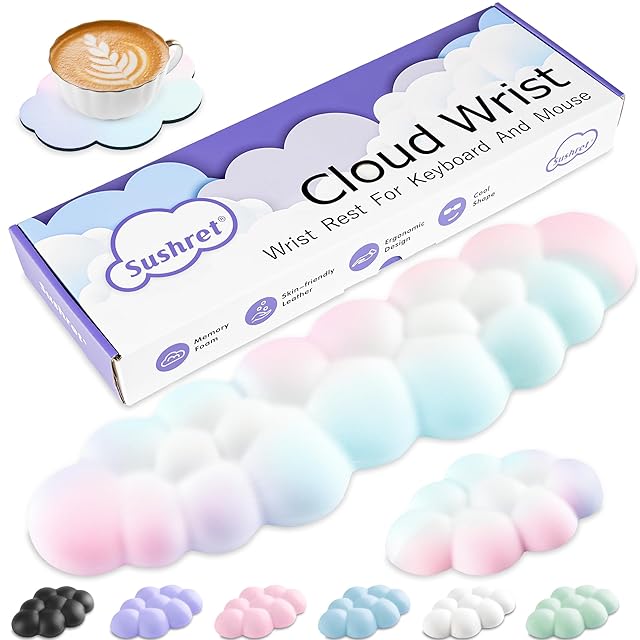 Sushret リストレスト 雲、PUレザーメモリーフォーム付きクラウド パームレストセット、手首のサポートとアームレストのためのかわいいリストレストキーボード、PC/ゲーム/ハンドクッション/コンピューター用のデスククラウド リストパッド (虹) | TREND DESIGN 家電専門店