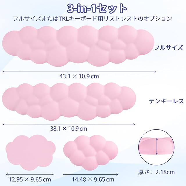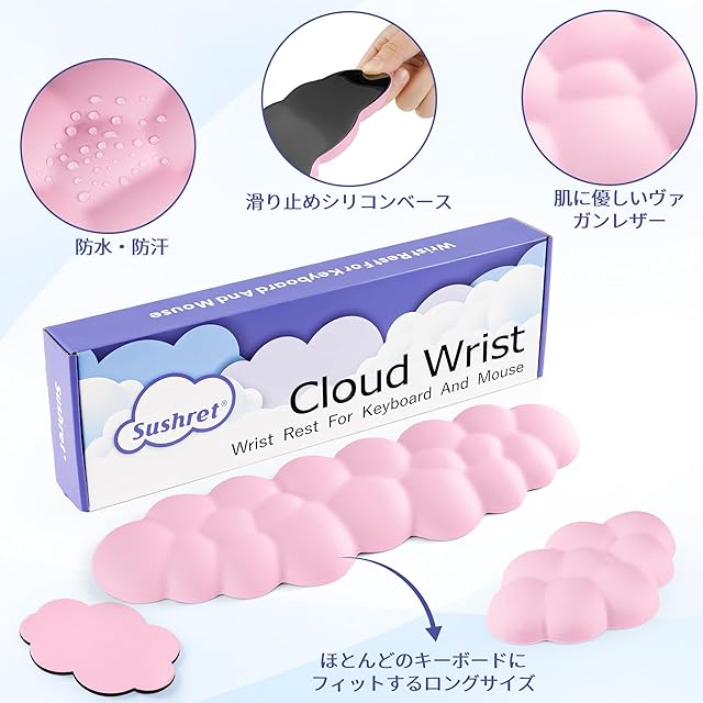 Sushret リストレスト 雲、PUレザーメモリーフォーム付きクラウド パームレストセット、手首のサポートとアームレストのためのかわいいリストレストキーボード、PC/ゲーム/ハンドクッション/コンピューター用のデスククラウド リストパッド (ピンク) | TREND DESIGN 家電専門店