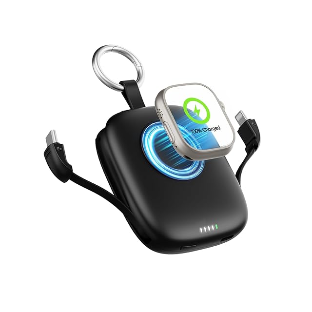 モバイルバッテリー【2025新登場・Apple Watch & スマホ充電可能・充放電一体ケーブル内蔵】アップルウォッチ充電器 携帯充電器 5000mAh 超軽量 小型 薄型 USB-C&iPhone用ケーブル内蔵 最大3台同時充電 apple watch全シリーズ/iPhone/Androidに対応 出張/アウトドア/キャンプ用 PSE認証済 | TREND DESIGN 家電専門店