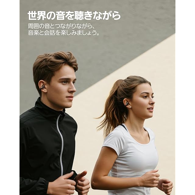 【IP57防塵防水】防塵・防水で、IP57準拠のワイヤレスイヤホンとして、汗や水しぶき、ほこりなどからしっかり保護、運動中の汗や突然の雨などにも安心です。毎日の通勤、アウトドア、スポーツシーンまで楽しめるイヤーカフイヤホンです。耳をふさがない構造で、外音も自然に聞こえ、安全面にも配慮します。友人との会話や公共施設のアナウンス等の外音を取り込みながら音楽を楽しむことが可能です。