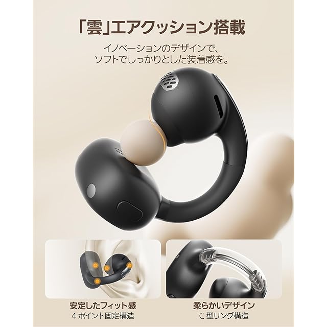 商品名:Baseus Bowie MC1 イヤーカフ ワイヤレスイヤホン オープンイヤー 【 最大40時間再生 / Bluetooth 5.4 / ベースブースト機能 / IP57防水 / 専用アプリ/大音量 音漏れ防止 】 「雲」エアクッションで快適 耳を塞がない 耳挟み式 完全ワイヤレス 開放型 イヤホン 急速充電対応 マルチポイント接続 (ブラック)