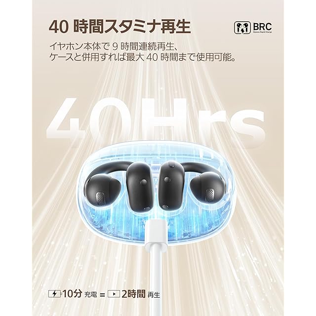 【最大40時間再生・物理ボタン操作で誤動作なし】イヤーカフ型イヤホン本体が満充電の状態で最大9時間、付属の充電ケースを合わせて使うと、最大40時間の音楽再生が可能です。数日間使用しても電池切れを心配はありません。タッチ誤操作を防ぐ物理ボタン設計で、音楽操作や通話もストレスフリー。イヤーカフ型イヤホンを初めて使う方にも安心。【24ヶ月の安心】万が一製品に不具合があった場合や正常な使用中の故障の場合は、期間内には新品交換、返品、返金などの対応をさせていただきます。【認証取得済み】電波法技適認証番号:222-254794