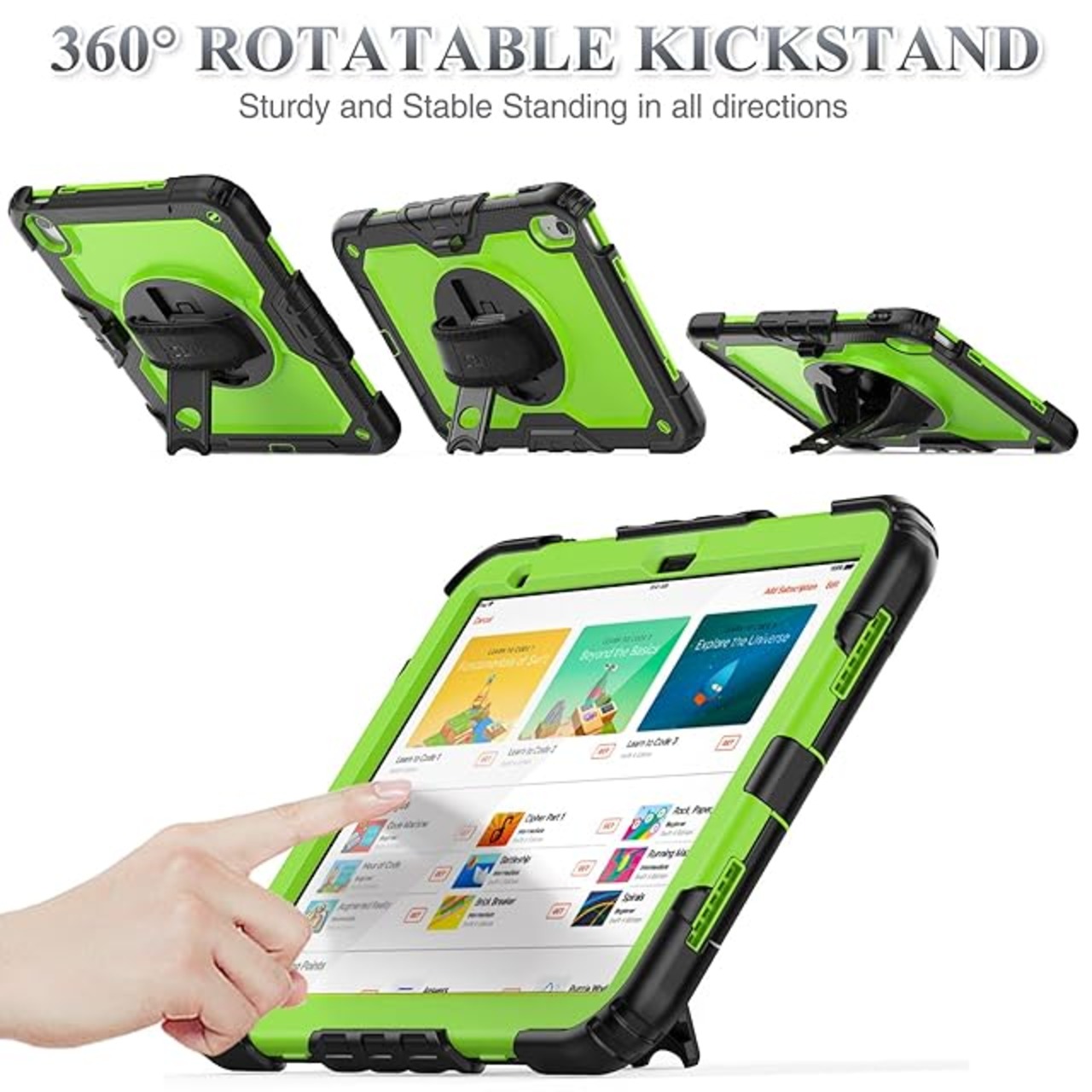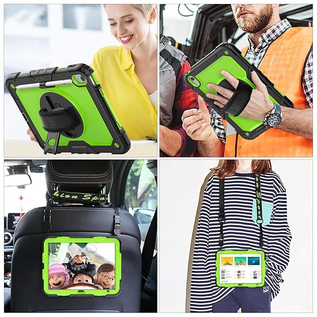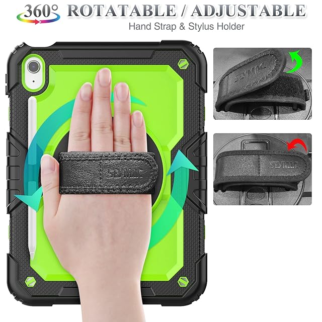SEYMAC stock iPad(A16) 第11世代/第10世代専用ケース 耐衝撃 ペンホルダー フィルム付き前面カバー 横置き縦置きスタンド 360度回転ハンドストラップ ショルダーストラップ付き(グリーン) | TREND DESIGN 家電専門店