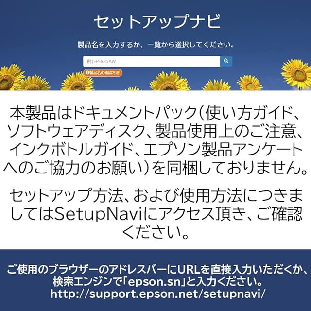 ドキュメントパック非同梱モデル。セットアップと使用方法につきましては、SetupNaviにアクセス頂き、ご確認ください。