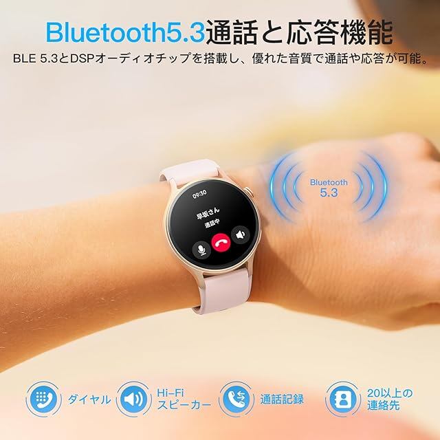 【通話機能付き&DSPオーディオチップ搭載】 ★スマートウォッチをタップするだけで通話可能であり、キーパッド付で電話をかけることができます、電話帳の作成、着信履歴の記録、更に、この便利性にDSPオーディオチップを搭載、安定性に高性能を加えます‥★「DSPオーディオチップって?」--DSPを搭載したら、複雑なアナログ回路だと、回路内でどうしても発生しがちなノイズや音質劣化とは全く無縁で、低ノイズで劣化の少ないエフェクト音が得られる。そこで、より安定、より速い、より高音質な通話体験を提供いたします。