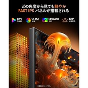 【Fast IPSパネル&広色域】178°の広視野角を誇るFast IPSパネルを採用。どの角度からでも鮮やかな色彩を再現し、DCI-P3 90%の広色域と16.7M色表示で、リアルで豊かな映像を楽しめます。350nitの高輝度とHDR400対応で、明暗の差が明確なシーンも美しく映し出します。