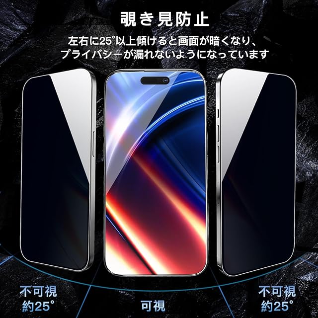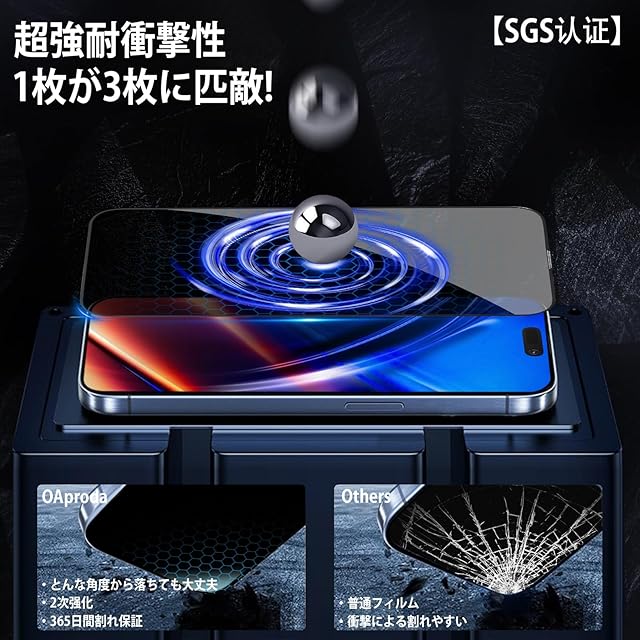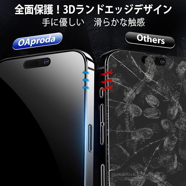 商品名:【新型ガイド枠・覗き見防止】OAproda ガラスフィルム iPhone 15 Pro 用 保護フィルム 超簡単貼り付け プライバシー保護 フィルム 自動吸着 気泡ゼロ 【1枚が3枚に匹敵 】防塵 全面保護 強化黒縁 いphone15pro 用 強化ガラス