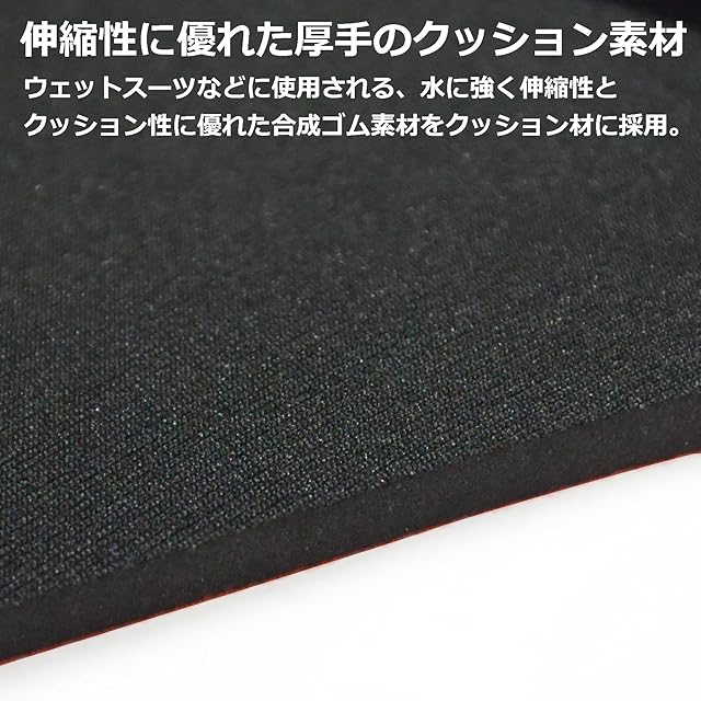 水に強く伸縮性とクッション性の高い5mm厚の合成ゴムをクッション材に採用。