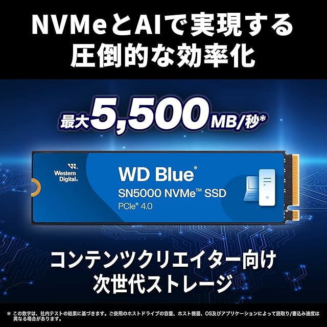 商品名:Western Digital ウエスタンデジタル 内蔵SSD 500GB WD Blue SN5000 (読取り最大 5,000MB/秒) M.2-2280 NVMe WDS500G4B0E-EC 【国内正規代理店品】