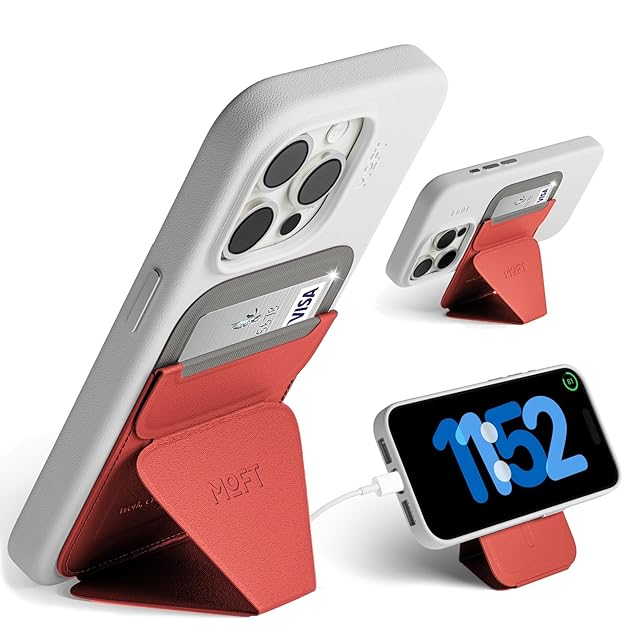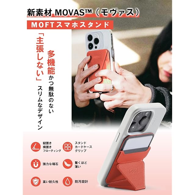 商品名:MOFT スマホスタンド 【MOVAS™ 耐久&磁力強化版】 Snap-On iPhone 16 iPhone 15 iPhone14 iPhone13 iPhone12 MagSafe対応 傷や汚れに強い マグネット カードケース 最大2枚収納 iPhoneスタンド Pro Plus ProMax 磁石 磁気吸着 薄型軽量 折り畳み式 ミニマリスト サステナブル (サンセットレッド)
