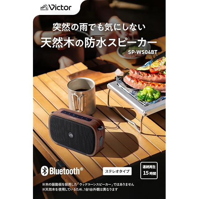 商品名:JVCケンウッド Victor SP-WS04BT-C Bluetooth スピーカー ワイヤレス 小型 最大15時間再生 ステレオペアリング ポータブルスピーカー 防水 防塵 お風呂 AUX対応 USB-C充電 ウッドデザイン バスウッド