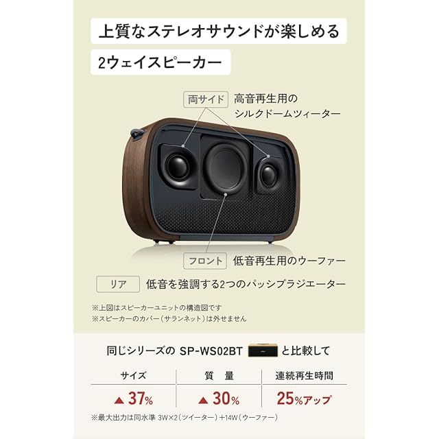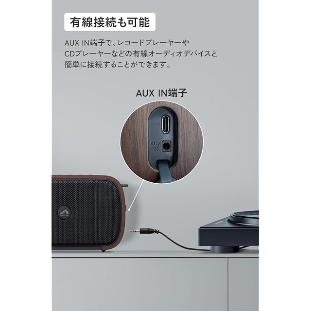 ✅上質なステレオサウンド___小型サイズながらクリアな中高域と広がりのある上質なステレオサウンドによる豊かな音楽空間を実現。オーディオメーカーが手掛ける2ウェイ・スピーカー構成。レコードなどの有線接続可能なAUX IN端子を装備。