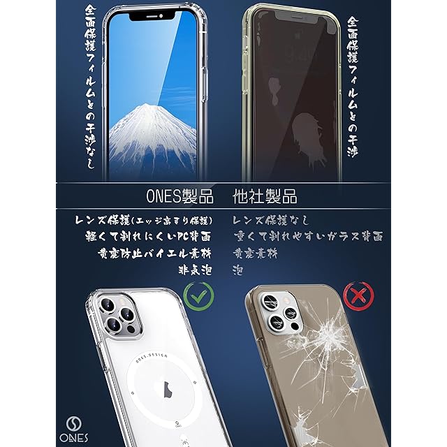 商品名:ONES iPhone13Pro 超強磁性MagSafe対応ケース 超透明 米軍MIL規格 超耐衝撃 エアバッグ 〔 高靭性強化PCガードボード ✚ 高弾性衝撃吸収TPUバンパー 〕『 画面 · レンズ保護、滑り止め、Qi充電 』 超軽量 持ちやすい 黄変防止 クリスタル クリア カバー