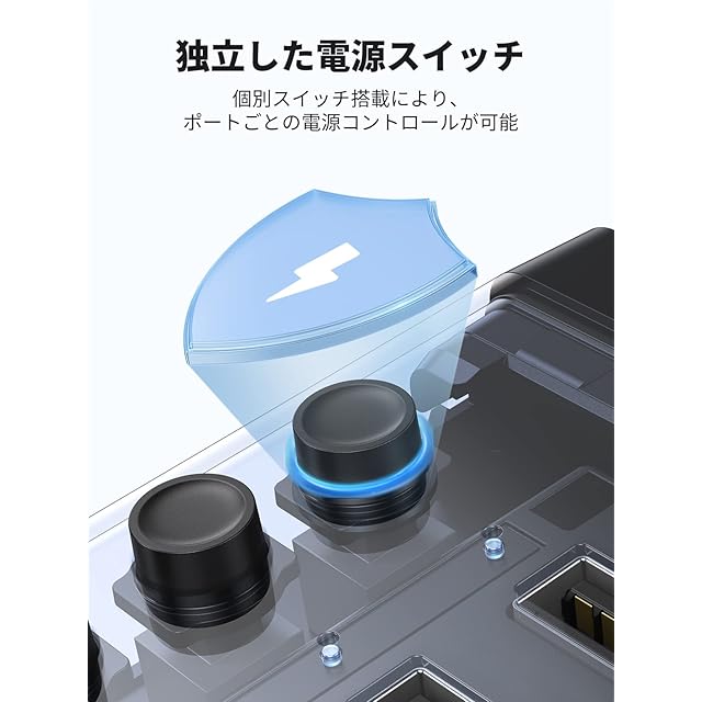 【USB3.0ハブ個別スイッチ付き】個別スイッチ搭載により、ポートごとの電源コントロールが可能です。各ポートはLEDライト付き、電源の状態が一目でわかります、頻繁に抜き差しも不要!