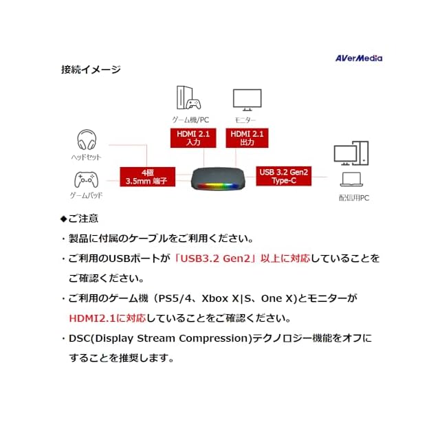 商品名:AVerMedia Live Gamer ULTRA 2.1 GC553G2 HDMI2.1 4K/144fps VRR HDRパススルー・60fps録画対応 USB接続 外付けキャプチャーユニット DV914