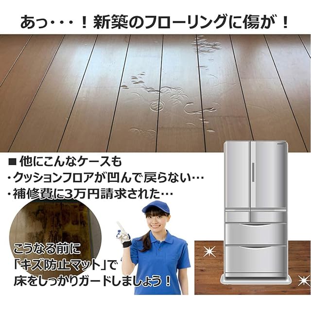 【床暖房対応】この冷蔵庫マットは、耐熱温度が120℃あり、床暖房にも対応しています。高温でも低温でも、このマットは非常に強い素材でできています。また、電気を通しにくく、火をつけても燃え広がりにくく、自己消火性にも優れているため、安心して使用できます。