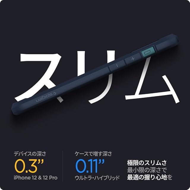 商品名:Spigen iPhone12Pro ケース iPhone12 ケース クリア 米軍MIL規格取得 耐衝撃 TPU バンパー 2重構造 すり傷防止 ワイヤレス充電対応 アイフォン12 ケース アイフォン12プロケース ウルトラ・ハイブリッド ACS02251 (ネイビー・ブルー)