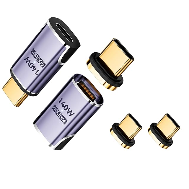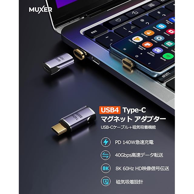 商品名:MUXER マグネット USB C 変換 アダプタ I字型【USB 3.1 40Gbps高速データ転送/140W PD急速充電/8K 60Hz HD映像信号伝送】 Type C 変換 アダプタ オス メス 変換 Thunderbolt 3 MacBook Pro/Airやその他Type-Cデバイスに対応 (140Wアダプタ2個+追加端子2個)