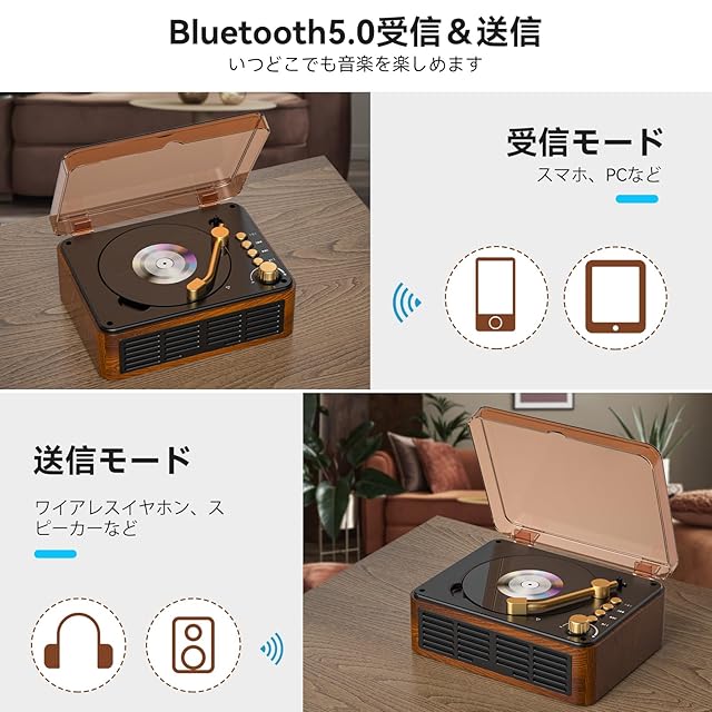 「Bluetoothv5.0を搭載し、受信も発信も対応」多くのCDプレーヤーより、本製品がBluetooth5.0技術を採用して受信も送信もでき、Bluetooth搭載のスマホ、PCなどデバイス以外、Bluetoothイヤホン、Bluetoothスピーカーにも接続可能で、いつどこでも楽しめます。