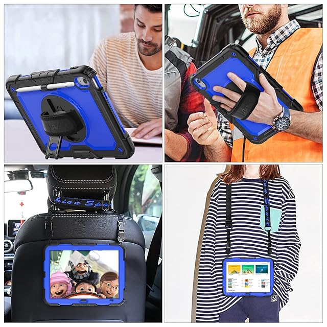 SEYMAC stock iPad(A16) 第11世代/第10世代専用ケース 耐衝撃 ペンホルダー フィルム付き前面カバー 横置き縦置きスタンド 360度回転ハンドストラップ ショルダーストラップ付き(ブルー) | TREND DESIGN 家電専門店