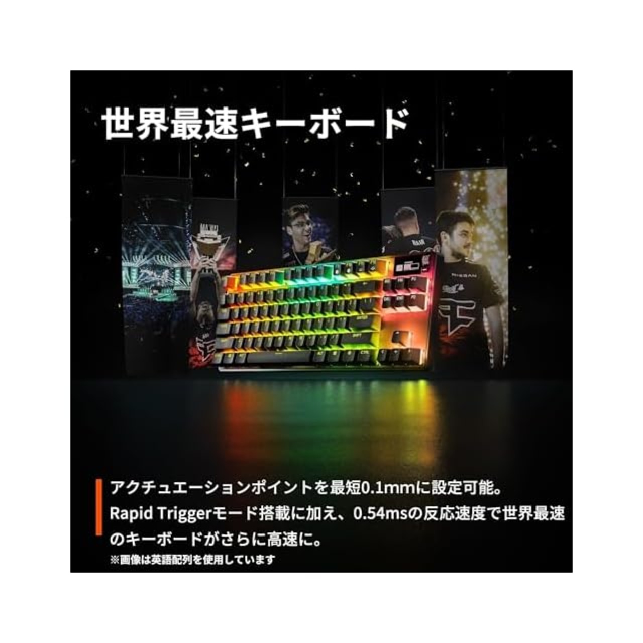 【世界最速キーボード】OmniPoint 2.0 Adjustable HyperMagnetic スイッチにより、アクチュエーションポイントを最短0.1mmに設定可能。Rapid Triggerモード搭載に加え、0.54msの反応速度で世界最速のキーボードがさらに高速に。