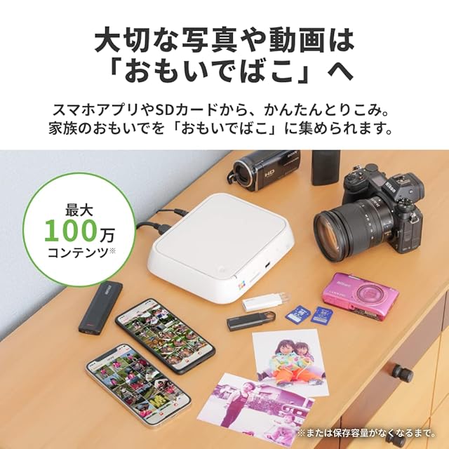 【もっと残せて、もっと快適に】使い勝手や安心性能はそのままに、新しくなった「おもいでばこ」3年プレミアムモデル。とりこみの高速化や、スマホ4K動画に対応。さらに、バックグラウンドでのとりこみ対応やオートスタンバイ機能の追加で、よりたくさん・快適に写真や動画を残せる。