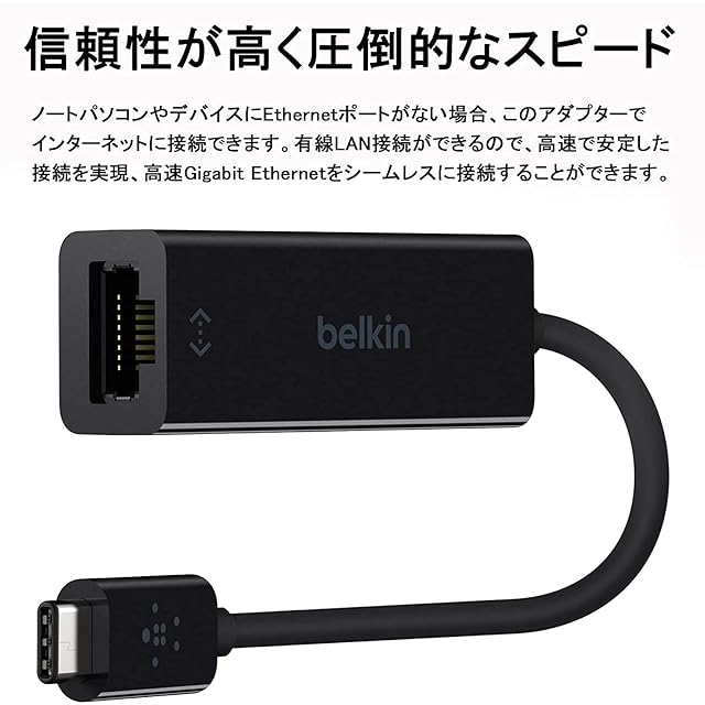 商品名:Belkin USB-C to Gigabit Ethernet 変換アダプター 有線LAN iPad Pro / MacBook Pro / Air Surface / Chromebook / iPhone 15対応 F2CU040BTBLK