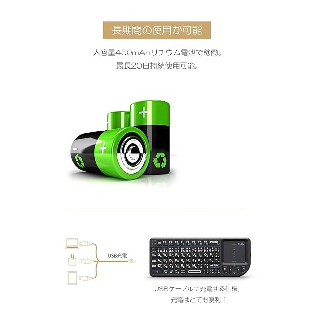 ✔【2.4Ghz無線簡単で接続】無線方式は2.4Ghz帯を採用し、煩わしい配線が不要で、付属のUSBレシーバーを挿すだけですぐ文字入力が可能になります。ベッドやソファでごろ寝しながら、10メートル以内(障害物無し)遠隔操作ができます。
