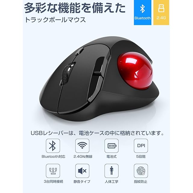 Ewin トラックボールマウス Bluetooth&2.4GHz両対応 3台同時接続 トラックボール 【NEWモデル】 ワイヤレス 親指 静音タイプ 高精度 エルゴノミクス 瞬時接続 無線マウス 7ボタン 進む/戻るボタン Windows/Mac/iOS/Android多機種対応(レッド) | TREND DESIGN 家電専門店