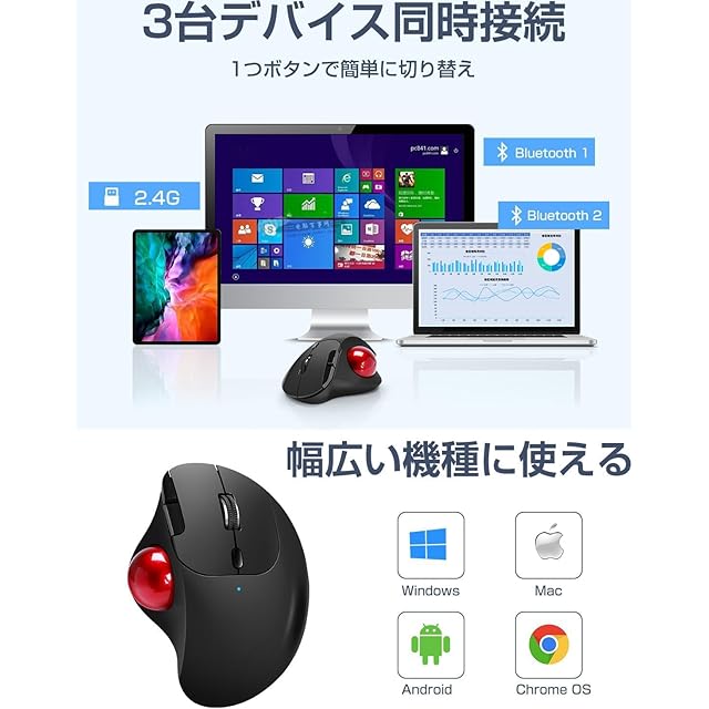 商品名:Ewin トラックボールマウス Bluetooth&2.4GHz両対応 3台同時接続 トラックボール 【NEWモデル】 ワイヤレス 親指 静音タイプ 高精度 エルゴノミクス 瞬時接続 無線マウス 7ボタン 進む/戻るボタン Windows/Mac/iOS/Android多機種対応(レッド)
