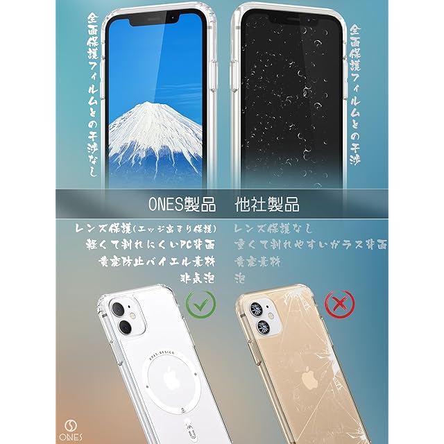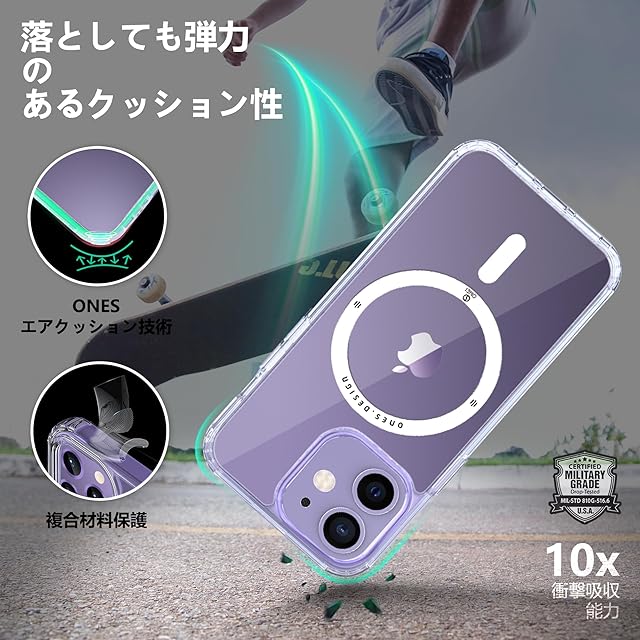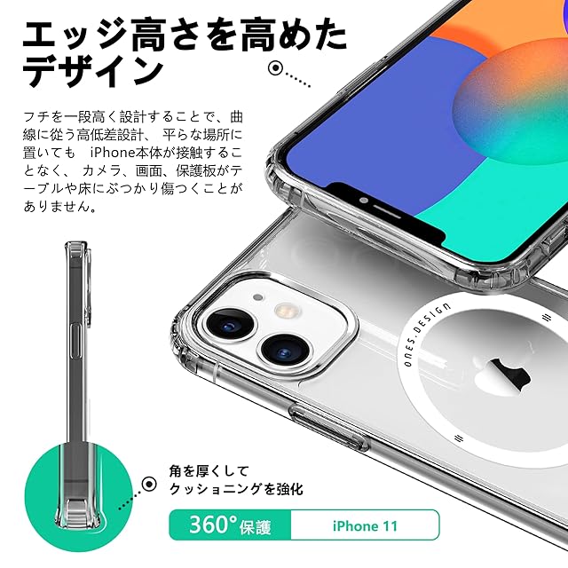 商品名:ONES iPhone 11 ケース 超強磁性MagSafe対応 超透明 米軍MIL規格 超耐衝撃 エアバッグ 〔 高靭性強化PCガードボード ✚ 高弾性衝撃吸収TPUバンパー 〕『 画面 · レンズ保護、滑り止め、Qi充電 』 超軽量 持ちやすい 黄変防止 クリスタル クリア カバー