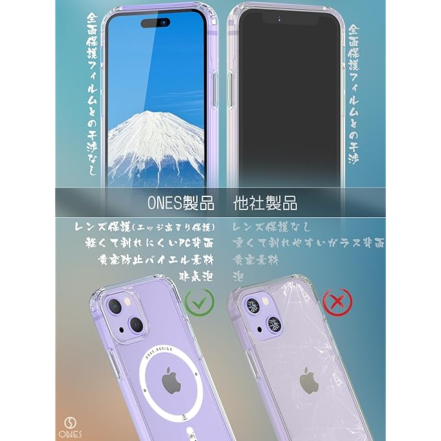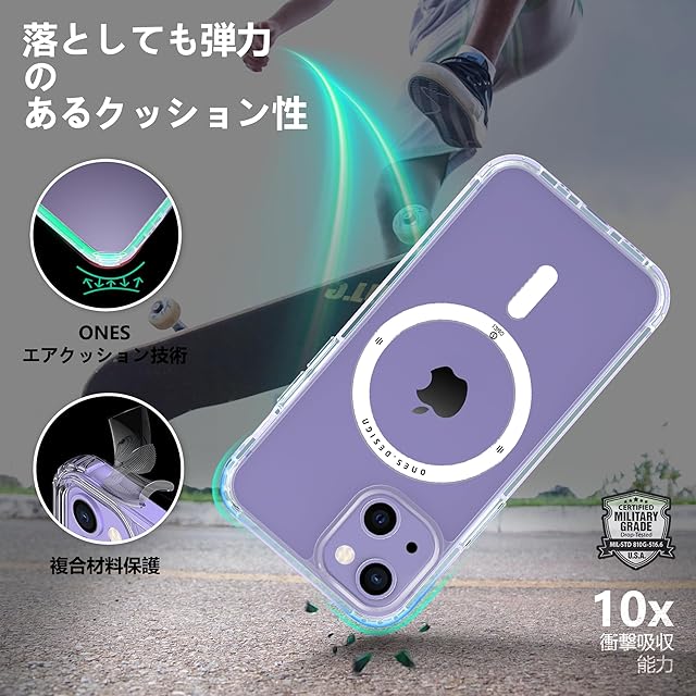 商品名:ONES iPhone15Plus 超強磁性MagSafe対応ケース 超透明 米軍MIL規格 超耐衝撃 エアバッグ 〔 高靭性強化PCガードボード ✚ 高弾性衝撃吸収TPUバンパー 〕『 画面 · レンズ保護、滑り止め、Qi充電 』 超軽量 持ちやすい 黄変防止 クリスタル クリア カバー