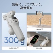【超軽量&快適なグリップ感】 - わずか300グラム[4]のOsmo Mobile 7は、人間工学に基づいたデザインと滑り止めハンドルを備え、長時間の使用に最適なスマホ用ジンバルです。