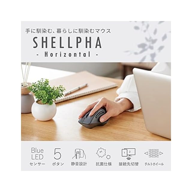 手になじむ、暮らしになじむエルゴノミクスマウス“SHELLPHA(シェルファ)"Bluetooth(R)マウスです。