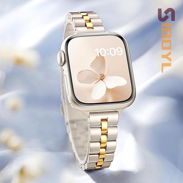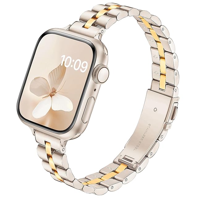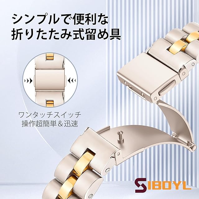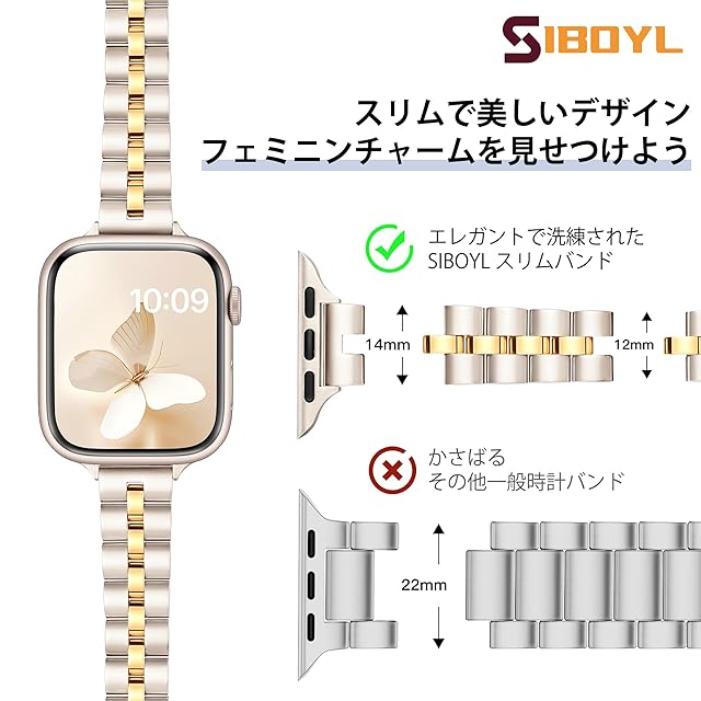 [SIBOYL] 超細人気い対応アップルウォッチ バンド 42mm(Series 10) 41mm 40mm 38mm、エレガントなシンプルさ、コンパチブルおしゃれあっふウォッチバンド、コンパチブルApple Watch ベルトステンレス、対応のアップルウォッチ ベルトレディース、対応 Apple Watch 10 Se 9 8 7 6 5 4 3 2 1-スターライト&ゴールデン | TREND DESIGN 家電専門店