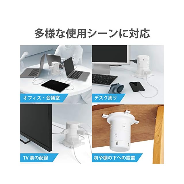 エレコム 電源タップ タワー型 延長コード [ 8個口 & USB×5ポート ] 固定パーツ付 雷ガード ほこりシャッター 2m ホワイト ECT-0620WH | TREND DESIGN 家電専門店