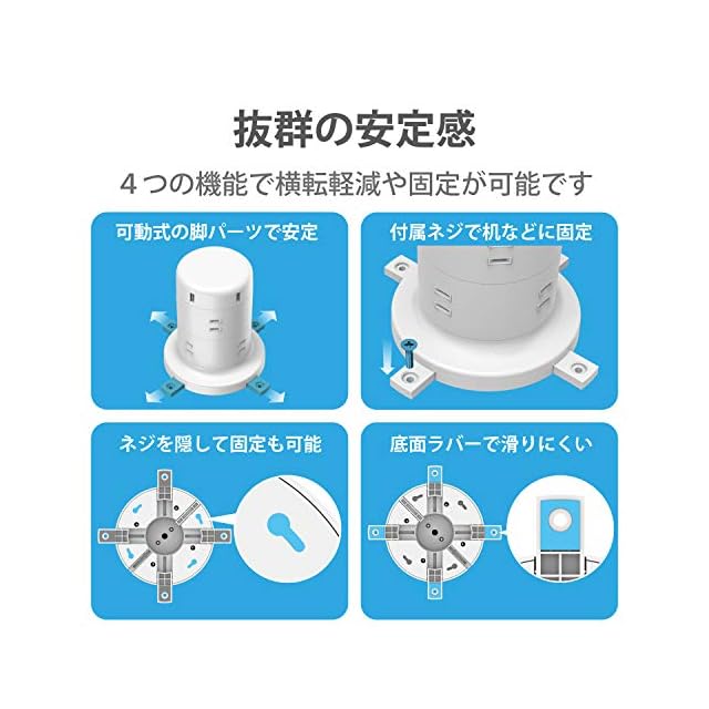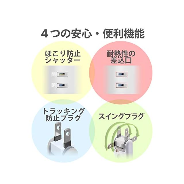 差込口は階層ごとに45度ずらした配置になっているため、ACアダプターなど大きなプラグを接続しても他の差込口に干渉しにくいです。