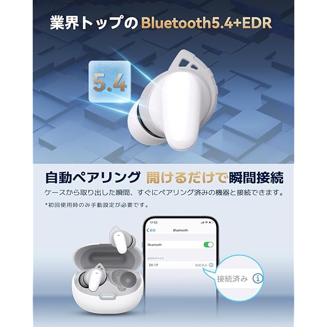 【Bluetooth 5.4+EDR 瞬時自動ペアリング & 優れた互換性】Bluetooth 5.4の遅延が低く、航続が長く、耐干渉性が高い。電池寿命・範囲を飛躍的に向上し、音飛びや途切れ、遅延、ノイズなどが最小限に抑えられ、安定した通信を実現しています。iOSやAndroid、Windows、タブレットとの互換性も向上しており。瞬時にペアリングする手順:①イヤホンを取り出す。②BLUETOOTHをオンにする。③自動ペアリング 初回ペアリング後、2回目の使用で、蓋を開けて携帯電話に自動的に接続できます。