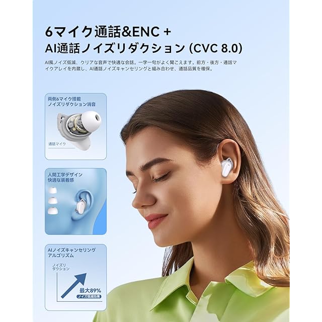 【ENC搭載 + AI通話ノイズリダクション】6つのシリコンマイク搭載 こちらのヘッドフォンは、ENC AIスマートノイズキャンセリング技術を搭載しており、周囲の騒音を正確に識別し、効果的に排除します。騒がしい街中や混雑した電車、オフィスなど、どんな環境でもクリアな通話を実現。AIによるノイズキャンセリングは、音声の出力を最適化し、自然な声で通話ができます。ビジネスでもプライベートでも、毎回の通話がスムーズに、ストレスフリーに。どんなシーンでも、クリアで効率的なコミュニケーションをお楽しみください。