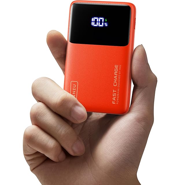 INIU P61-E1 軽量 モバイルバッテリー 10000mAh 22.5W 小型 大容量 急速充電 PD QC【USB C入出力 残量表示 PSE認証済 LEDライト付き パススルー機能】モバイル バッテリー 携帯充電器 アウトドア/防災/緊急用の必携品 iPhone 16 / 15 & Android iPad その他各種対応 日本語取扱説明書付き【オレンジ】