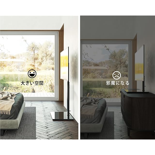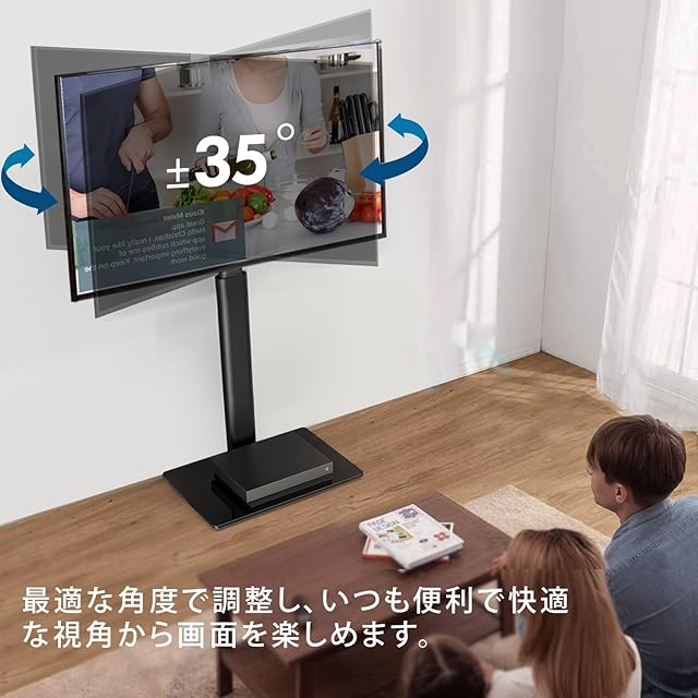 【ラック回転・高さ調節】高さが金具と支柱の取り付け位置により、8段階の高さ(1060mm~1240mm)を選択して取り付けることができます。また、左右方向へ±35°回転することができるので、リビングルームだけでなく、キッチンや寝室に居ても、最適な調整角度で調整し、いろんな視角からの観賞を満たします。
