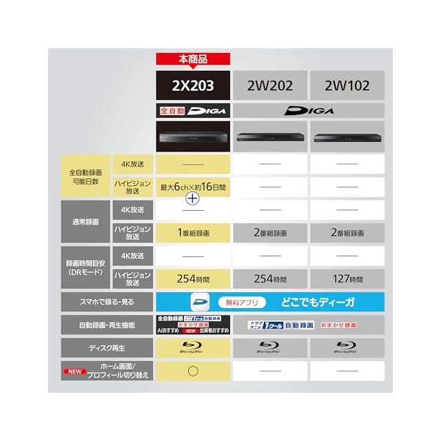 パナソニック 2TB 7チューナー ブルーレイレコーダー 全録 6チャンネル同時録画 どこでもディーガ対応 全自動DIGA DMR-2X203