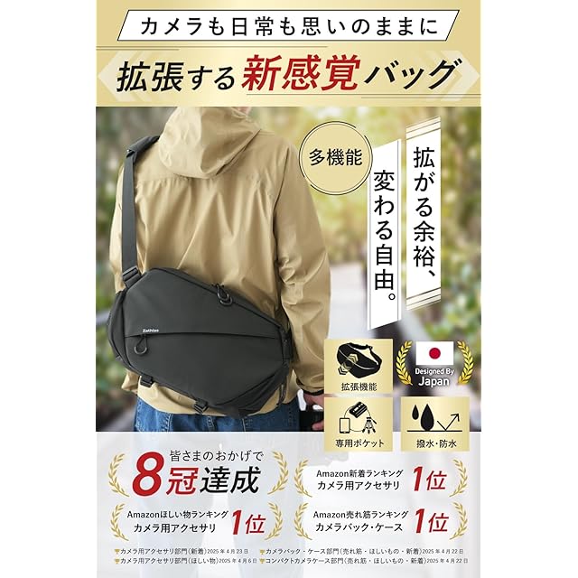 商品名:【拡張する収納】Zathlas カメラバッグ ショルダー 防水 一眼レフ 三脚収納 磁石不使用 おしゃれ