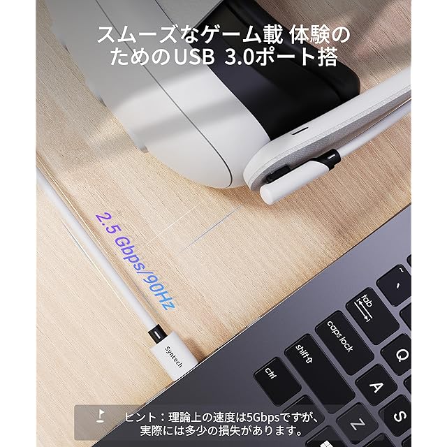 商品名:Syntech リンクケーブル 5M 充電付き、Meta Quest 3S/Quest 3/Quest2/Pico 4 に対応、別の充電ポート付き VR リンクケーブル、USB 3.0 から Type C コード ライト PC/SteamVR 用