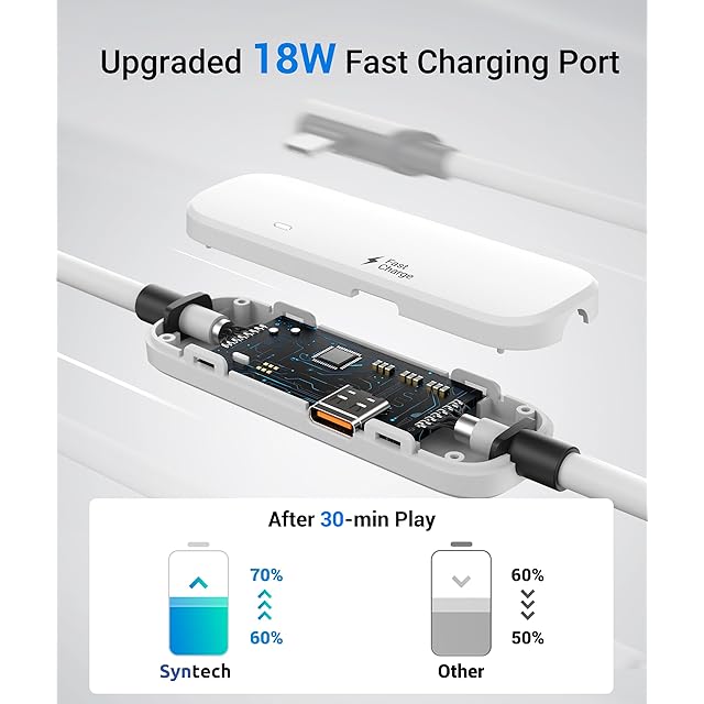 安全な充電:Syntechの充電リンクケーブルはQuest3/2の充電プロトコルに準拠し、第二世代の安全チップを採用してバッテリーレベルと充電電力をバランスします。それは電流を安全な範囲に保ち、バッテリーの寿命を損なわないようにします。したがって、Quest3の容量が65%を超えると、充電電力が減少する可能性があります。注記:高電力の他の充電器を使用すると、「液体または異物が検出されました」と間違って警報される可能性があるため、Quest3S/3は公式の充電器で充電してください。